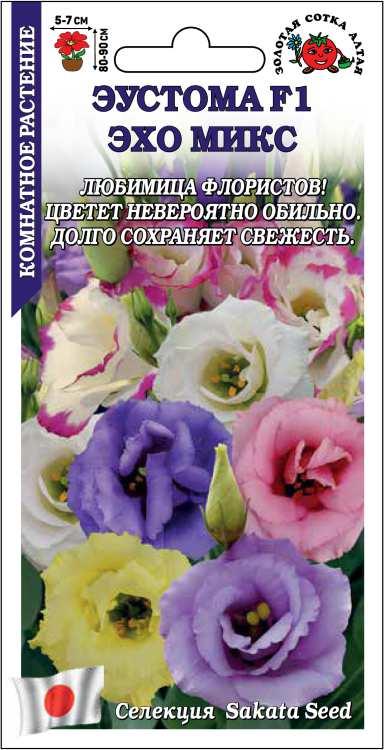 Эустома - одно из лучших растений для производства срезанных цветов! Выращивается в саду как однолетник или круглогодично в оранжереях. Сильные и прочные побеги не гнутся и не ломаются под тяжестью огромного количества бутонов. Крупные густомахровые цветки отличаются богатством расцветки, долго сохраняют свежесть в букетах и при транспортировке. Гибриды серии Эхо зацветают рано и цветут невероятно обильно.
